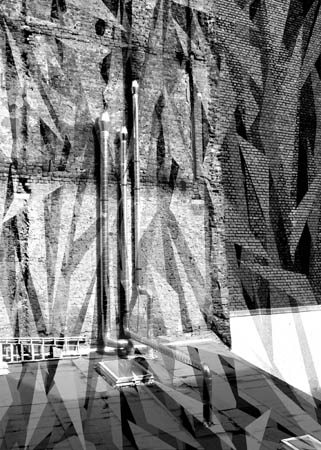 Das digitale Fotocutup Backyard I entstand als autonomer Teil einer Raum-Installation. In seinem Motiv nimmt die fotografische Arbeit Bezug auf den Ausstellungsraum, durch dessen Fenster man auf einen Hinterhof blickt. Die Künstlerin verband und kontrastierte den Innen- und Außenraum durch die Gegenüberstellung des Blicks aus dem Fenster und dem Blick auf das mehrdimensionale Bild. Das Thema Bild als Fenster, wie es schon in der Malerei der Renaissance zu finden ist, wurde in Backyard I aufgenommen und gleichzeitig erweitert: Das fotografische Bildmotiv des Hinterhofs, das in dem von der Künstlerin entwickelten Fotocutup-Verfahren realisiert wurde, changiert aufgrund der von ihr eingesetzten, speziellen Technik zwischen einem kubistisch-tiefenräumlichen Fensterblick und einem flächigen, geometrischen Formenspiel. | ||||||||||||||||||||||||||||||||||||||||||||||