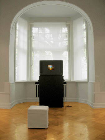 Das Fernsehen, non-stop 24 Stunden bewegte Bilder. Der Rezipient kann zwischen den Programmen wählen und zappen. Tele-Vision lädt die Betrachter ein, in anderer Weise aktiv zu werden. Das Objekt ist ein umfunktionierter Fernseh-Apparat. Anstelle der Mattscheibe ist ein Hologramm zu sehen, dessen kleines, rechteckiges, erleuchtetes Bild für den Betrachter zunächst als eine imaginäre Landschaft erscheint. Der holographische Raum zeigt jedoch die technischen Materialien im Inneren des Fernsehapparates. Tritt man näher an das Hologramm heran, wird es zum durchsichtigen Fenster und öffnet den Raum in das reale Innere des Fernseh-Apparates. In der Vermischung der beiden Räume gleichen Motivs bildet sich ein dritter Raum, eine neue virtuelle Realität. Ein multiperspektivisches Wechselspiel entsteht zwischen dem Bild des Hologramms und dem dahinter sichtbar werdenden Raum, in dem zahlreiche Mikrochips und Platinen auf dem stillgelegten "motherboard" des TV-Apparates sichtbar werden. Durch Bewegungen der Besucher bilden sich neue, permanent wandelnde Räume. Eine weitere imaginative Verfremdung entsteht durch eine mediale Begegnung dieser Vexierbilderwelt mit einer Klangkomposition aus heterogenen Materialien mit dem Titel Räume", die über Kopfhörer wahrgenommen werden kann. |